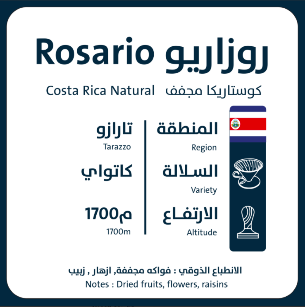 تأتيكم هذة القهوة الجميلة من كوستاريكا حيث تمت زراعتها بمنطقة تارازو الشهيرة بإنتاج أجود أنواع البن الكوستاريكي ، يعتمد المزارع مدريغال فارغاس وعائلته بمرزعة لاباكايا على ارتفاع يصل إلى 1700 م فوق سطح البحر طرق زراعة وحصاد حديثة وطرق معالجة ممتازة وتجفيف على الأسرة الافريقية .