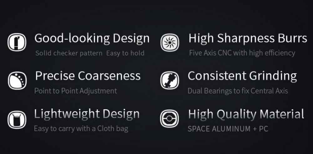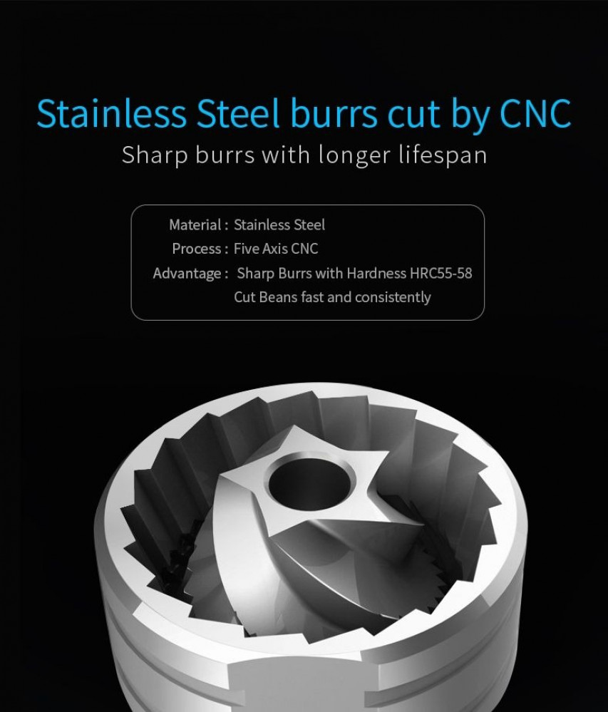 طاحونة c2 من تايمور بتصميم جميل ووزن خفيف ، تتمسز بتروس مخروطية من الستانليس ستيل بحجم 38مم